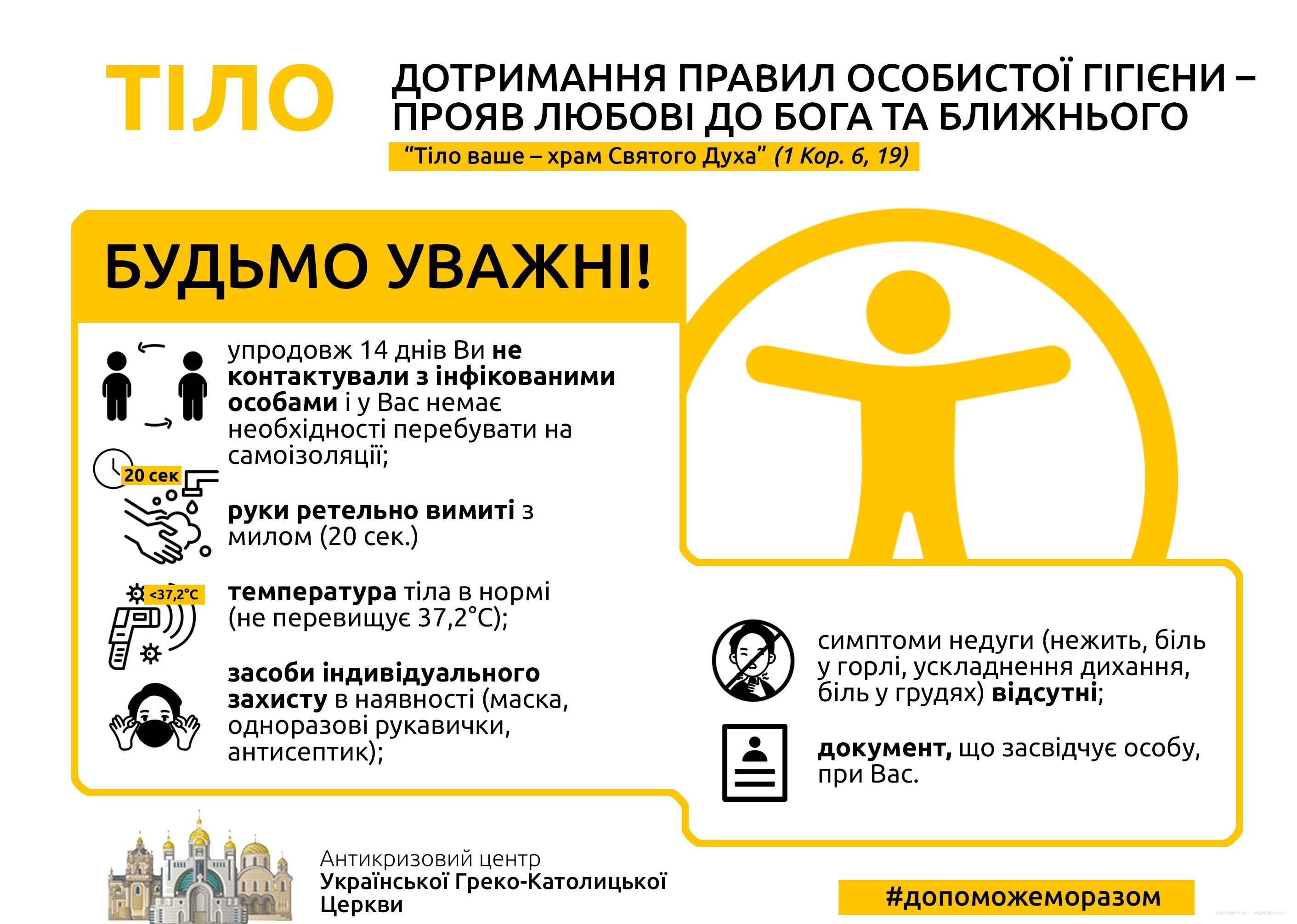 «Оскільки сьогодні, на превеликий жаль, загроза захворювання не відступає, а число інфікованих все збільшується, для нас є дуже важливо, щоби культові споруди УГКЦ були безпечними місцями, а Святі Тайни та інші богослужіння звершувалися в гідний спосіб. Тому спільно із літургійною Комісією та Комісією у справах охорони здоров’я, як рівно ж при допомозі експертів, ми напрацювали ці богослужбові рекомендації для застосування у наших храмах в Україні», – пояснив о. Любомир Яворський, голова Антикризового центру УГКЦ.