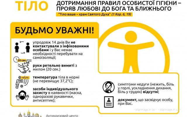 У «Богослужбових рекомендаціях на час вірусної епідемії» йдеться, зокрема, про дотримання правил особистої гігієни, поведінку в храмі, спосіб уділення Святих Таїнств, звершення богослужінь, паломництв тощо. У Антикризовому центрі УГКЦ наголошують, що дані рекомендації є не зобов’язуючого, але дорадчого характеру. Їх дотримання свідчило б про відповідальне ставлення християн до нових викликів.