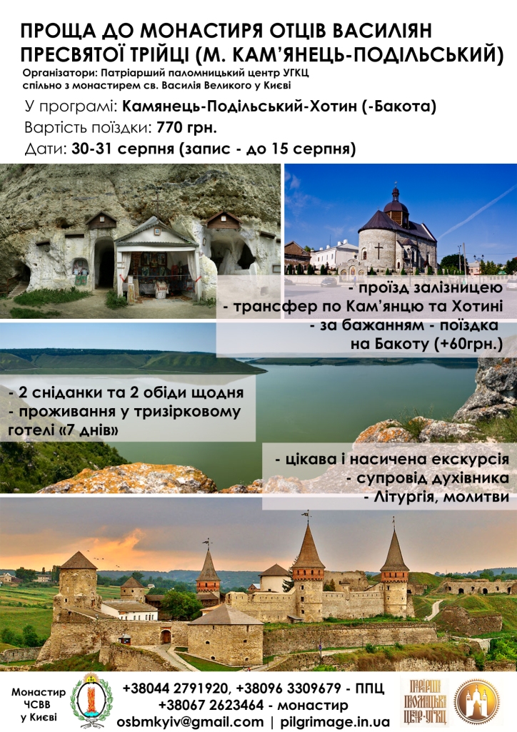 Патріарший паломницький центр УГКЦ спільно з монастирем св. Василія Великого у Києві раді запросити вас відвідати чарівне місто Кам’янець-Подільський в останні дні літа 2014 року.
