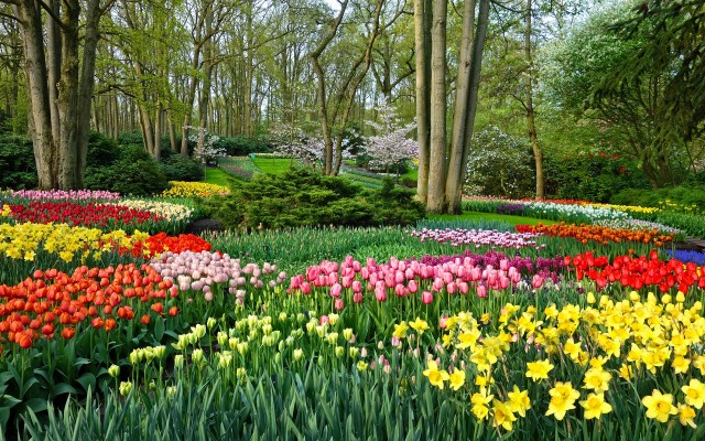 Сад Кекенгоф, розташований на 32 гектарах землі, знаменитий своїми квітами і великими тюльпановими галявинами. У парку посаджено 4,5 мільйона тюльпанів 100 різних різновидів. Тут три оранжереї: з тюльпанами, золотими нарцисами і пишним бузком в одній, червоними трояндами в інший і орхідеями в третій.