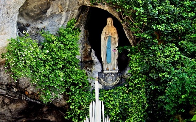 В лютому 1858-го року Пречиста Діва Марія з’явилася 14-ти річній селянській дівчині Бернадеті Субіру, що збирала хмиз у лісі. З’явилася ця “Пані” дівчинці в печері, що стояла неподалік, і сказала до неї: “Йди до священиків і скажи їм, щоб збудували на цьому місці каплицю, бо я хочу, щоб воно стало місцем ласки для людей. Не переставай молитись і кажи іншим, щоб вони молилися…. Піди і напийся з джерела та окропи себе водою з нього… ” Згодом цілюще джерело почало приваблювати мільйони паломників. Божественна літургія. Відвідини Гроту – місця Об’явлення Богородиці та участь у молитовній процесії вервиці з свічками.