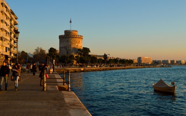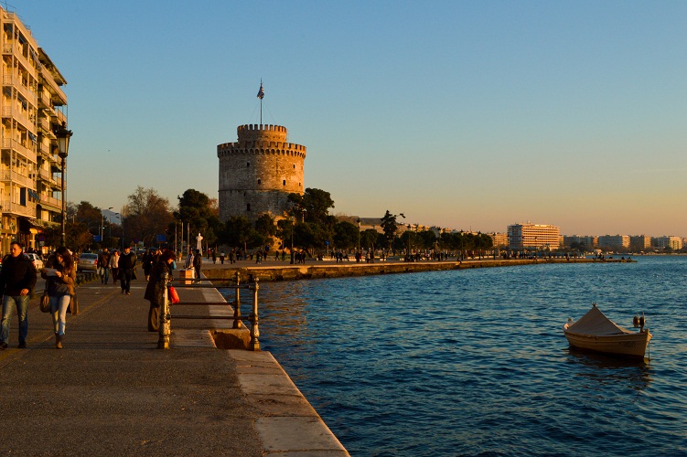 Відвідини базиліки Святого Димитрія, спільна молитва біля мощей святого (покровителя міста). Під час самостійної прогулянки по місту Вас зацікавить архітектура міста- чергування класичного і сучасного стилів. Головний символ міста – Біла вежа, побудована на березі затоки, напевно знайома навіть тим, хто ще не побував тут. Визначними пам’ятками міста є тріумфальна арка палацу імператора Галерія, Храми.