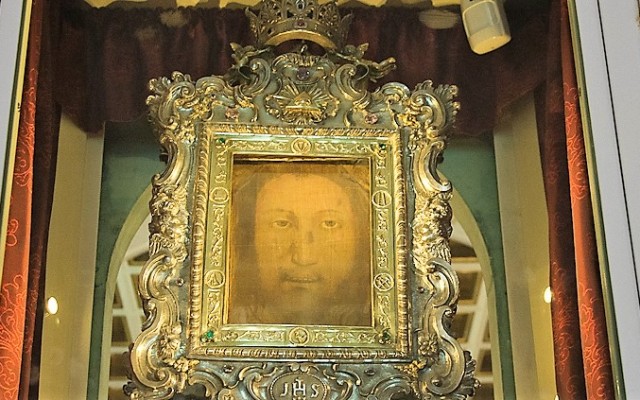 Наукові дослідження однозначно підтверджують, що Плат (хустина), що зберігається в Манопелло, походить з Єрусалиму. В результаті чудесного Воскресіння Христа з гробу на хустині залишився відбиток Обличчя Ісуса. Ймовірно, і Туринська Плащаниця, і Плат з Манопелло, який отримав назву «Плат Вероніки», до V століття зберігалися в місті Едесса, яке прийняло християнство в першому столітті н. е.