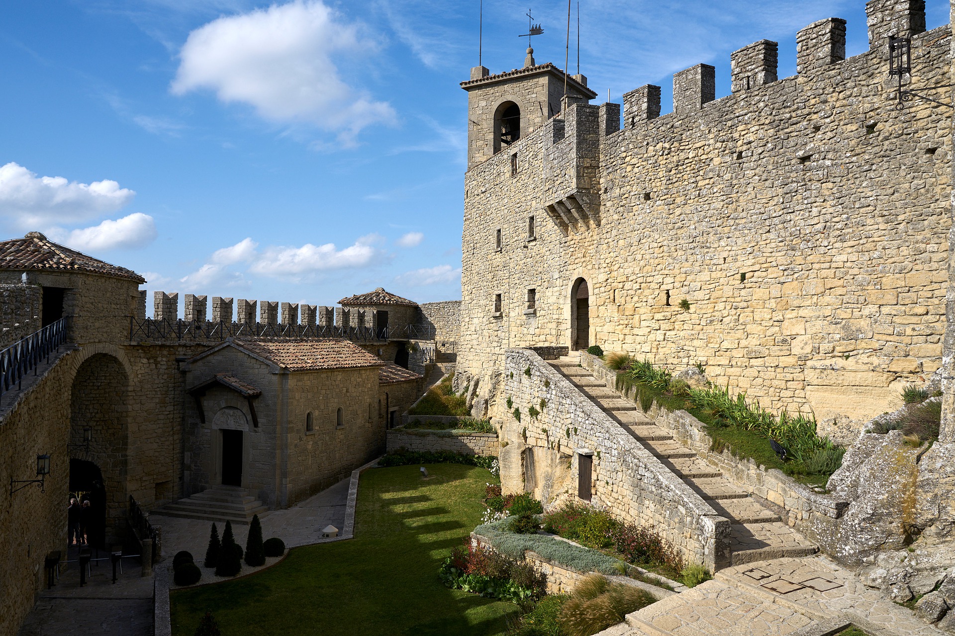 Три вежі Сан-Марино — середньовічні будівлі на трьох вершинах гори Монте-Титано.