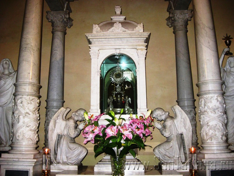 Але справді відомо одне: з того часу в місті Ланчано ось уже 12 століть зберігаються Кров і Плоть, що матеріалізувалися під час Євхаристії у церкві святого Легонція. Ви також будете мати змогу побачити і помолитись перед цим Чудом.