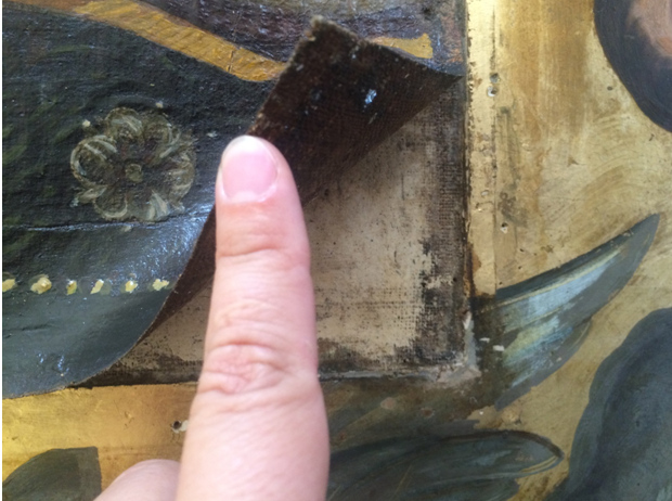 для того щоб ікону назад приклеїти нам потрібно було спочатку її зняти почистити старий клей, який втратив міцність і назад її приклеїти